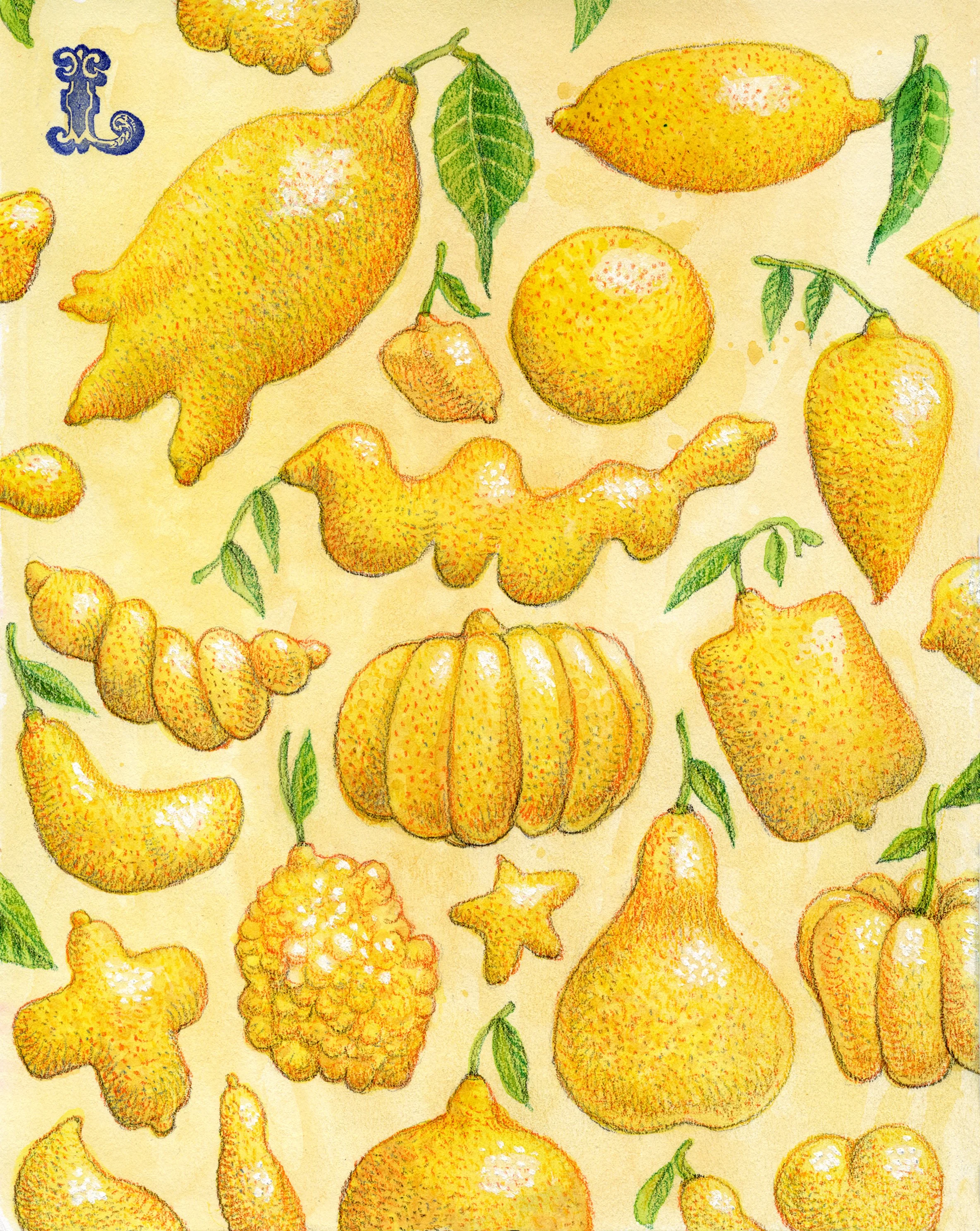 My wife bought me a John Derian book. He’s a decoupage artist extraordinaire. He owns a shop in the East Village where he sells his stuff. He’s obsessed with eighteenth and nineteenth century natural history prints. After staring at this book a few days, I came up with my lemon concept. There was nothing like this in his book but somehow it kick started my brain to concieve of this. Now I can go back to hypnotizing myself in his pages again.