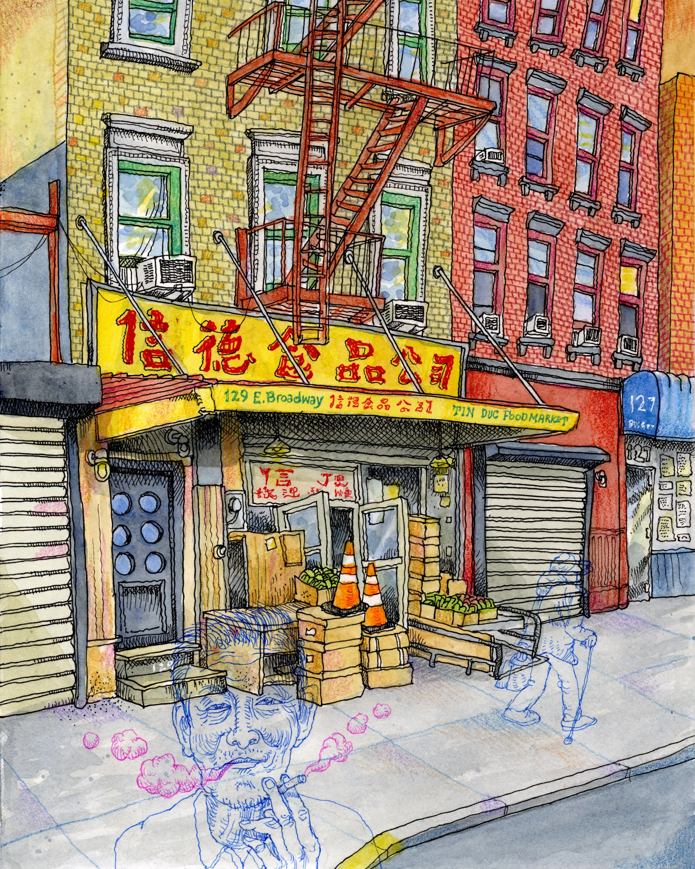 This is what the world looks like to me. A somewhat realistic, colorful cartoon. When I pick up my pen and begin to draw, I’m always shooting for super realism but somhow a cartoon always develops. I was breast fed on Woody Woodpecker and toilet trained by Magilla Gorilla. To quote Popeye the Sailor Man, “I yam what I yam.”