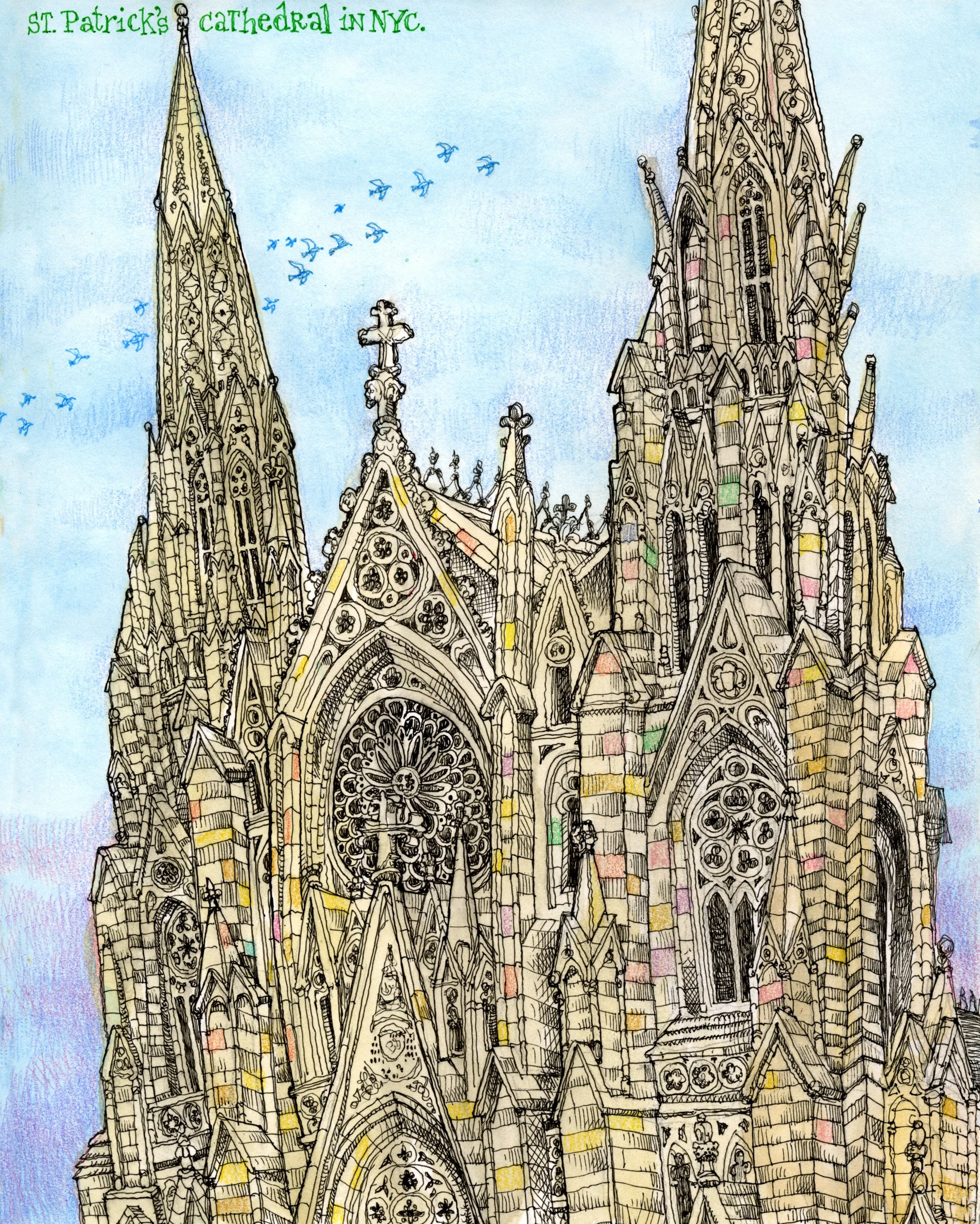 I showed up on the street to draw St. Patrick’s Cathedral on 5th Avenue. It was a blustery cold day. The streets were filled with high school and grammer school aged catholic school kids all in uniforms. I hadn’t seen this many since the 1960s when I myself was in catholic school. Not a single kid cared or looked at what I was drawing. They all passed me by.